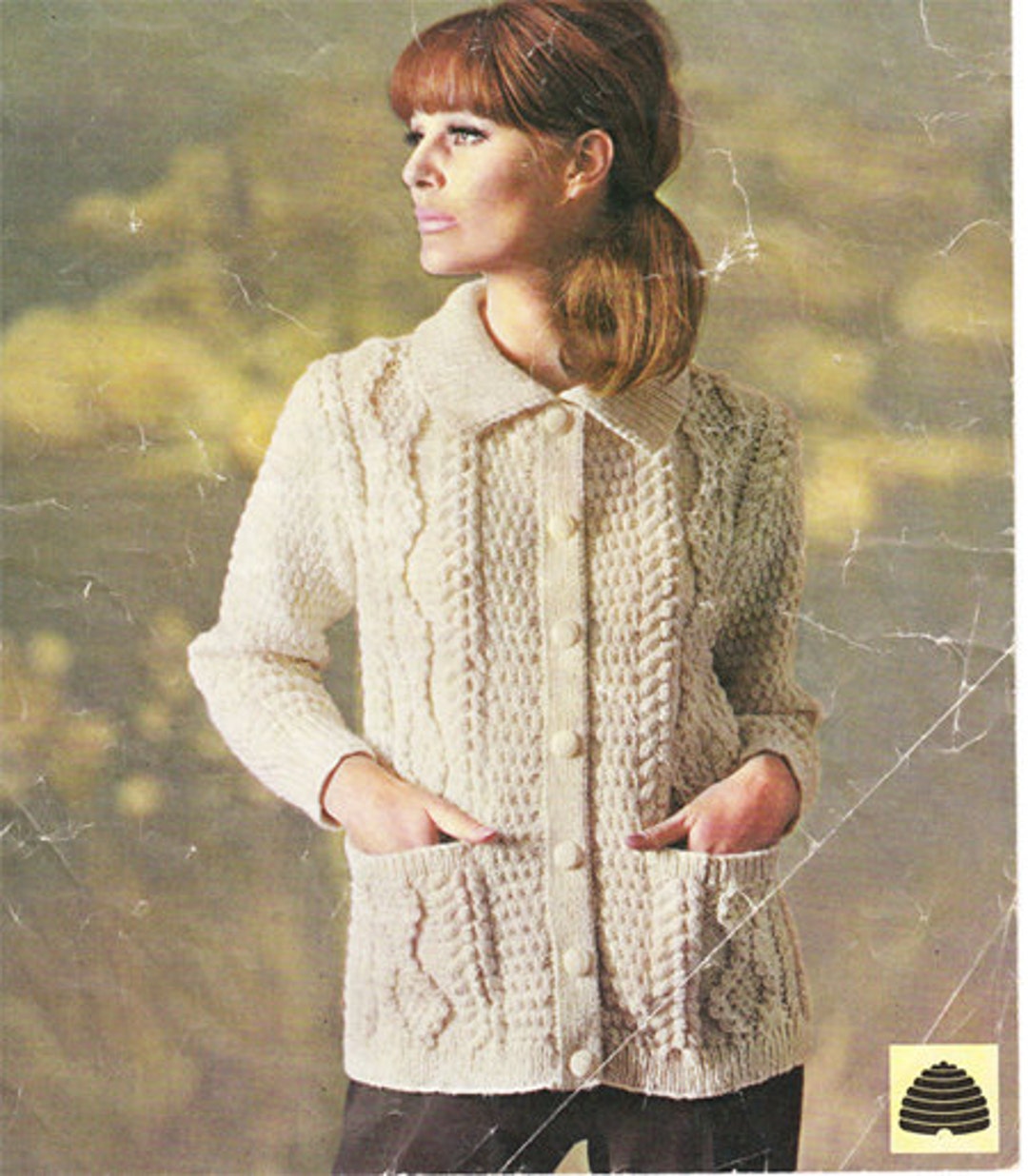 Vintage Aran Ladies Cardigan Knitting Pattern Pdf 34 40 Inch Etsy